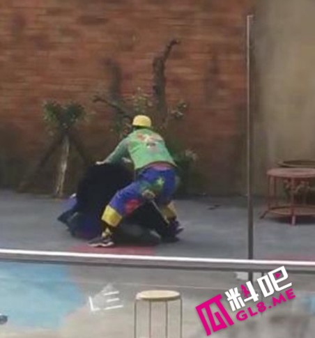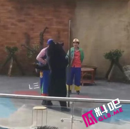 浙江湖州龙之梦动物表演场黑熊表演突变惊魂!黑熊突然将驯兽师扑倒在地!