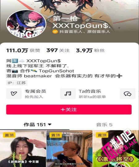最近,抖音网红说唱选手『第一枪 XXXTopGun$』火出圈了,原因竟然是因为他的巨屌?许多瓜友纷纷议论,表示难以置信。不得不说,这哥们不仅说唱有实力,操粉的实力也是杠杠的!他的巨屌虽然没有20厘米那么夸张,但16、17厘米肯定是有的。因为这点,很多小姐姐看到视频后,纷纷赶到江苏镇江找他打炮,热闹非凡。