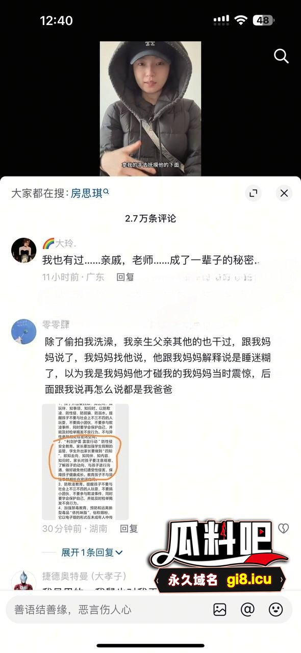 著名歌手李雨霏过年自曝被舅舅猥亵 评论区引发大量共鸣 更有亲生父亲偷拍女儿洗澡视频